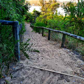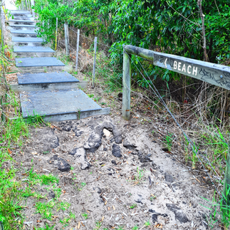 The path continues for some time interchanging from dirt, soil and honeycomb rubber surfaces, and sections of ascending and descending stairs and boardwalks. There is ample signage along the path to keep you on track. However, for a change, some signed paths will detour you through the shrubbery to the left, taking you to the main beach.