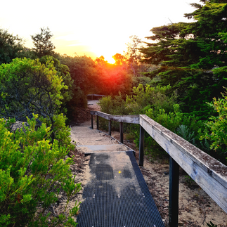 It never ceases to amaze me, the immediate peace this walk provides. This evening the weather is dead calm, however, the path is enclosed on either side by thick trees and shrubs which provide shelter even on a windy day. The air is thick with the scent of tea tree and banksia; the silence is broken only by the songs of the local birdlife and the waves crashing a short distance to your left.